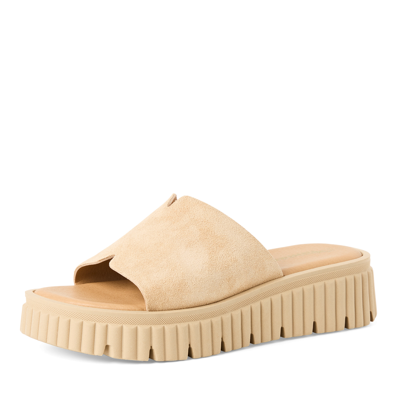 Δερμάτινη μπεζ παντόφλα Tamaris